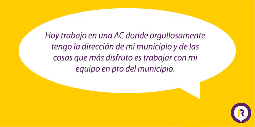 Cuando comenzó Rumbo una de las cosas que menos me gustaban era el trabajo en equipo. Hoy trabajo en una AC donde orgullosamente tengo la dirección de mi municipio y de las cosas que más disfruto es trabajar con mi equipo en pro del municipio.